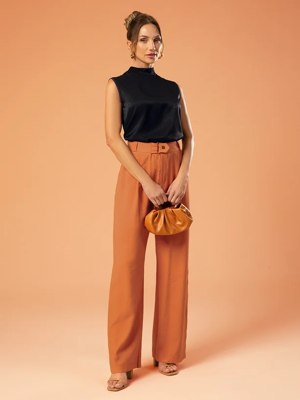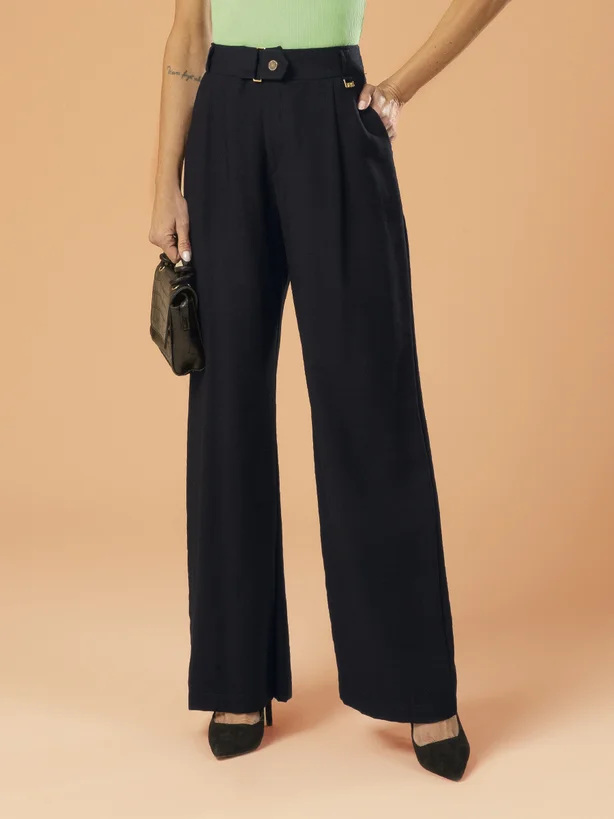 Calça feminina adulto em alfaiataria Dominique, sinônimo de elegância e estilo. Destaque para o detalhe na cintura alta, conferindo um visual refinado e valorizando a silhueta feminina. Peça versátil, perfeita para compor looks sofisticados e contemporâneos em diversas ocasiões.