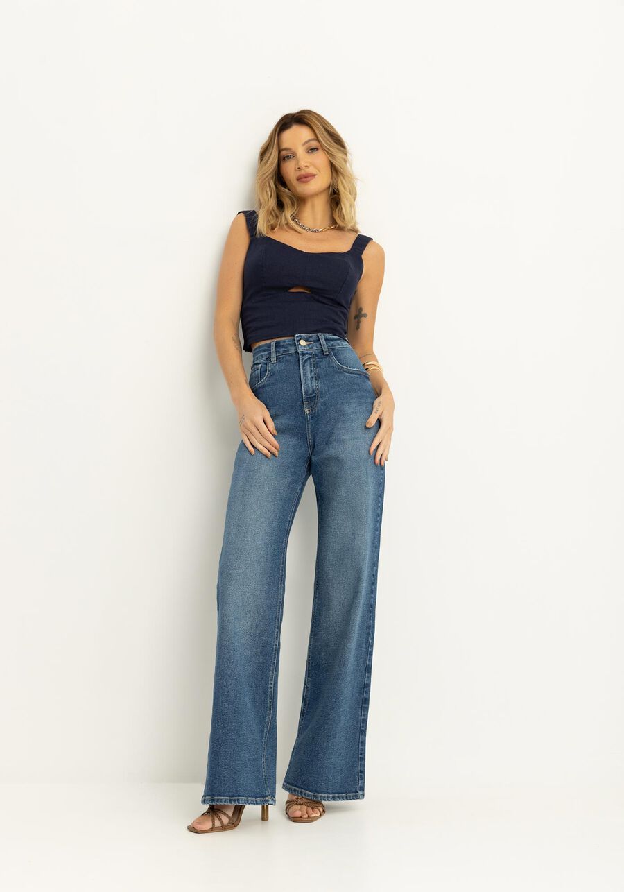 Calça Jeans Wide Leg Com Cintura Alta Chapa Barriga