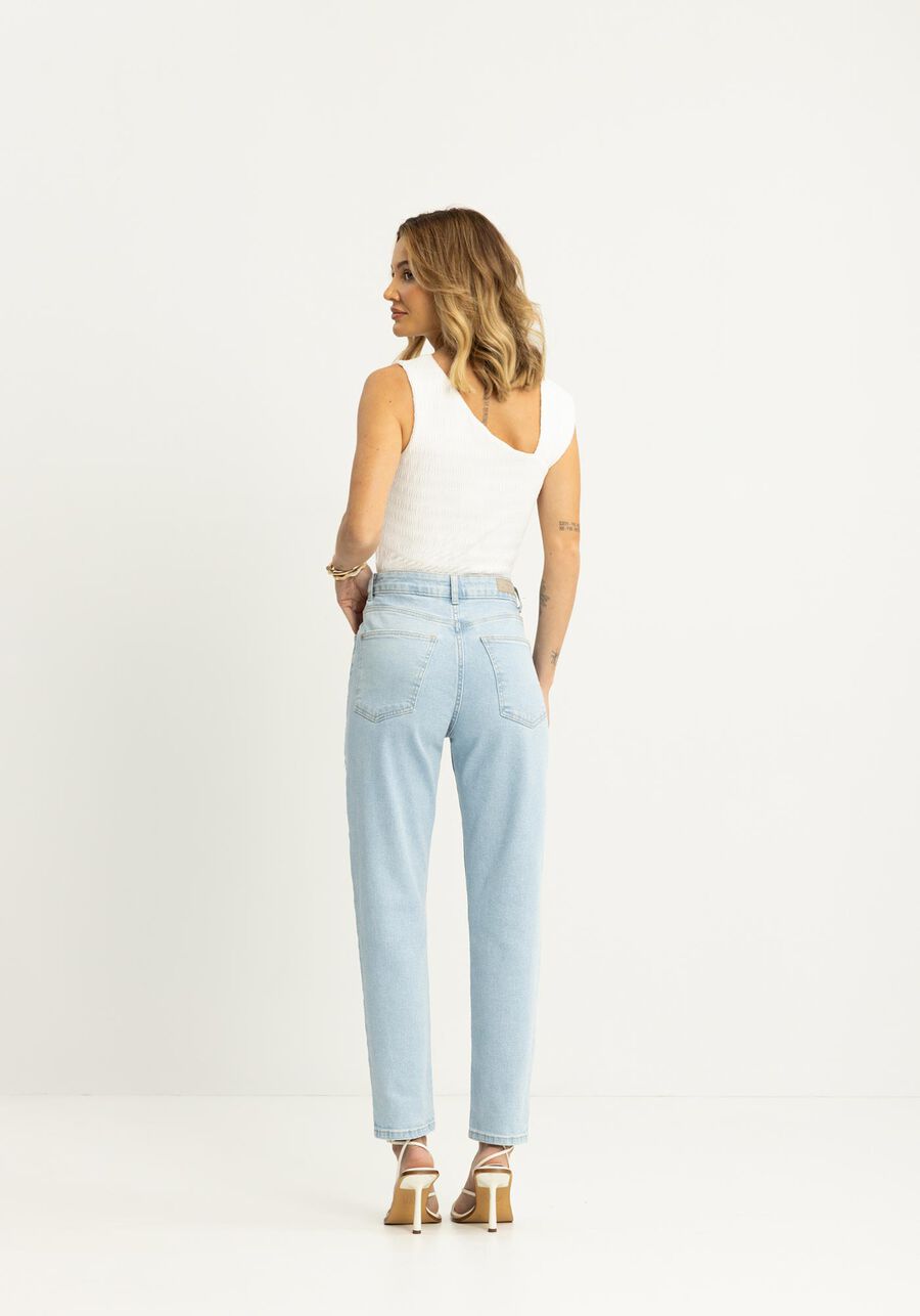Confortável e despojada, a calça mom jeans se destaca pelas aplicações de strass. A combinação do brilho sutil com o efeito "barriga chapada" revela um visual autêntico que transforma qualquer produção. - Acabamento "chapa barriga" que comprime a área abdominal - Feita em jeans com elastano - 30% de elasticidade - Modelagem mom - Cintura alta - Bolsos funcionais - Aplicações de strass Coleção Alto Verão 25