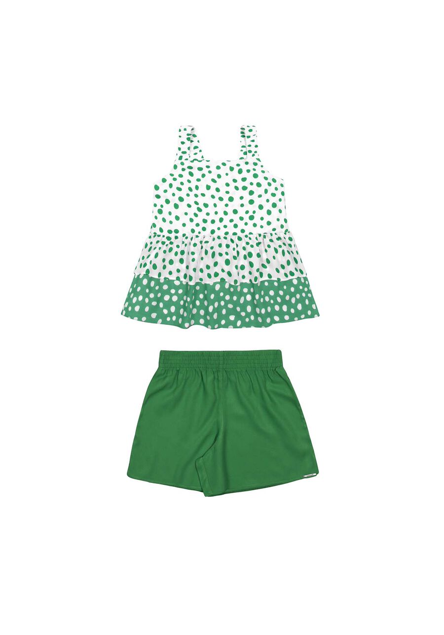 Conjunto Menina Curto Em Viscose Com Shorts E Blusa De Poá Diversão e estilo na medida! Neste conjunto Alakazoo, a blusa evasê de poás se une ao shorts liso versátil para criar looks descontraídos e leves. A escolha ideal para dias ensolarados e aventuras com os amigos! Feito com viscose responsável Produção com menor impacto ambiental Blusa em tecido encorpado estampado Modelagem evasê Alças largas Shorts em tecido encorpado liso Menos transparência Cós elástico
