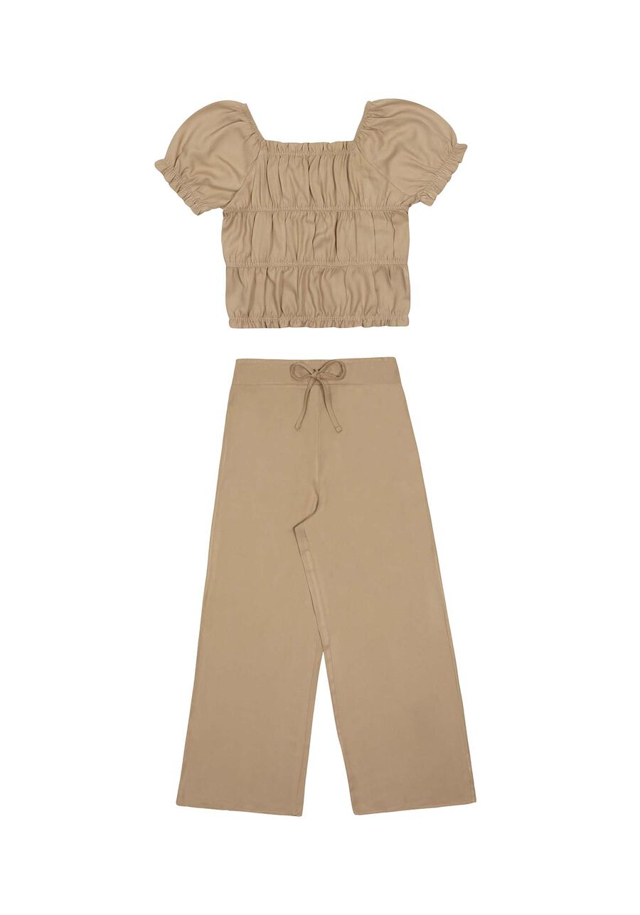 Conjunto Infantil Liso Com Blusa Franzida E Calça Pantalona