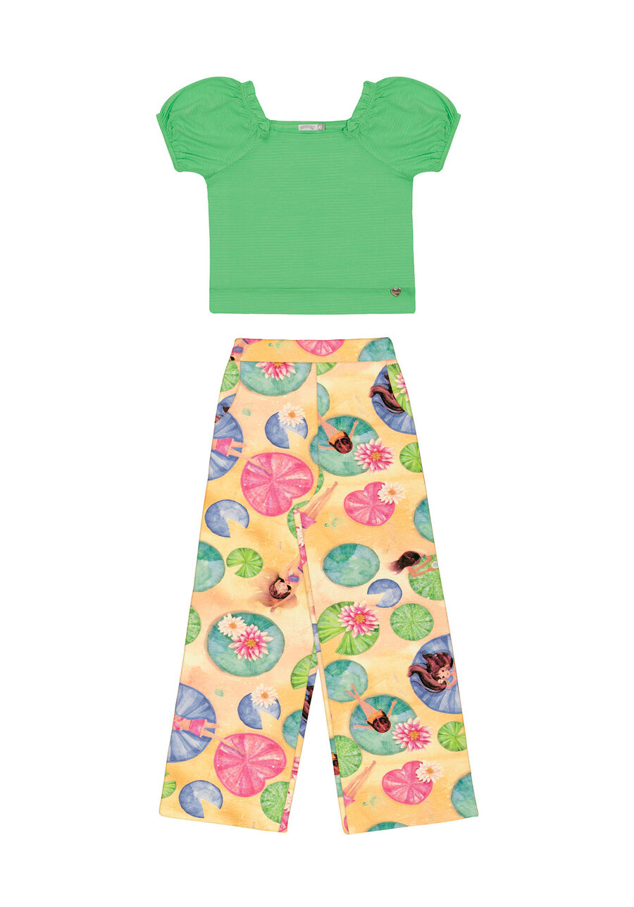 Conjunto Infantil Menina com Calça Wide Leg Estampada