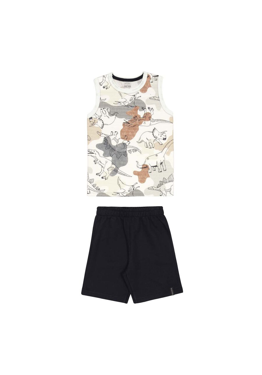 Conjunto Infantil Menino Com Bermuda E Regata Estampada Dino