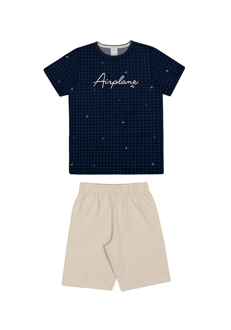 Explore o verão com estilo e diversão nesse conjunto Alakazoo! A camiseta de mangas curtas é bem moderninha com estampa Grid e detalhe bordado. Já a bermuda de Moletom texturizado é puro conforto, perfeita para as aventuras nos dias de sol. Detalhes incríveis e uma dose extra de conforto! Camiseta confeccionada em Meia Malha Penteada que passa por um processo de "lixamento" que deixa o tecido com um aspecto de pele de pêssego, sendo perceptível o toque aveludado, além de leve elasticidade e que não encolhe Estampa rotativa: podem ocorrer variações na localização dos elementos Bordado frontal com tradução "avião" Mangas curtas Decote redondo Reforço interno no decote costas que mantém a peça alinhada mesmo após várias lavagens domésticas Bermuda confeccionada em Moletom New Wave com toque macio e textura de listras Elástico no cós Algodão responsável: seguindo padrões socioambientais em sua produção. Coleção Frescor