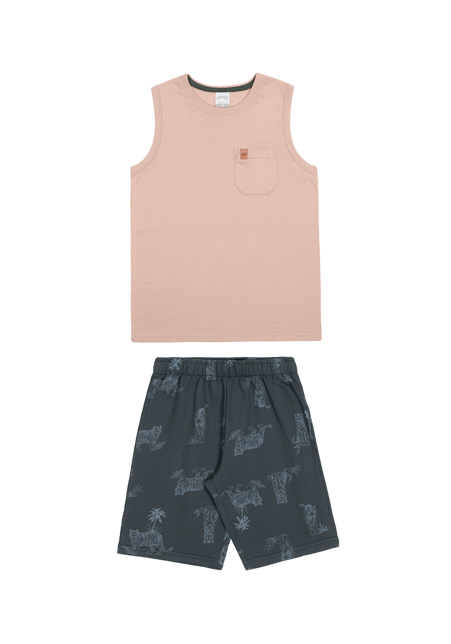 O conjunto perfeito para os meninos mais moderninhos! A regata em malha com detalhe de bolso é super descolada, e a bermuda em moletom fresco com estampa de onça garante todo o estilo e conforto. Combine com tênis e deixe a aventura começar! Regata confeccionada em Malha New Amsterdam: toque macio, com textura diferenciada de listras Decote redondo Reforço interno no decote costas que mantém a peça alinhada mesmo após várias lavagens domésticas Detalhe em bolso na frente Bermuda confeccionada em Moletom leve, com toque macio e sem peluciamento interno Algodão responsável: seguindo padrões socioambientais em sua produção. Coleção Frescor