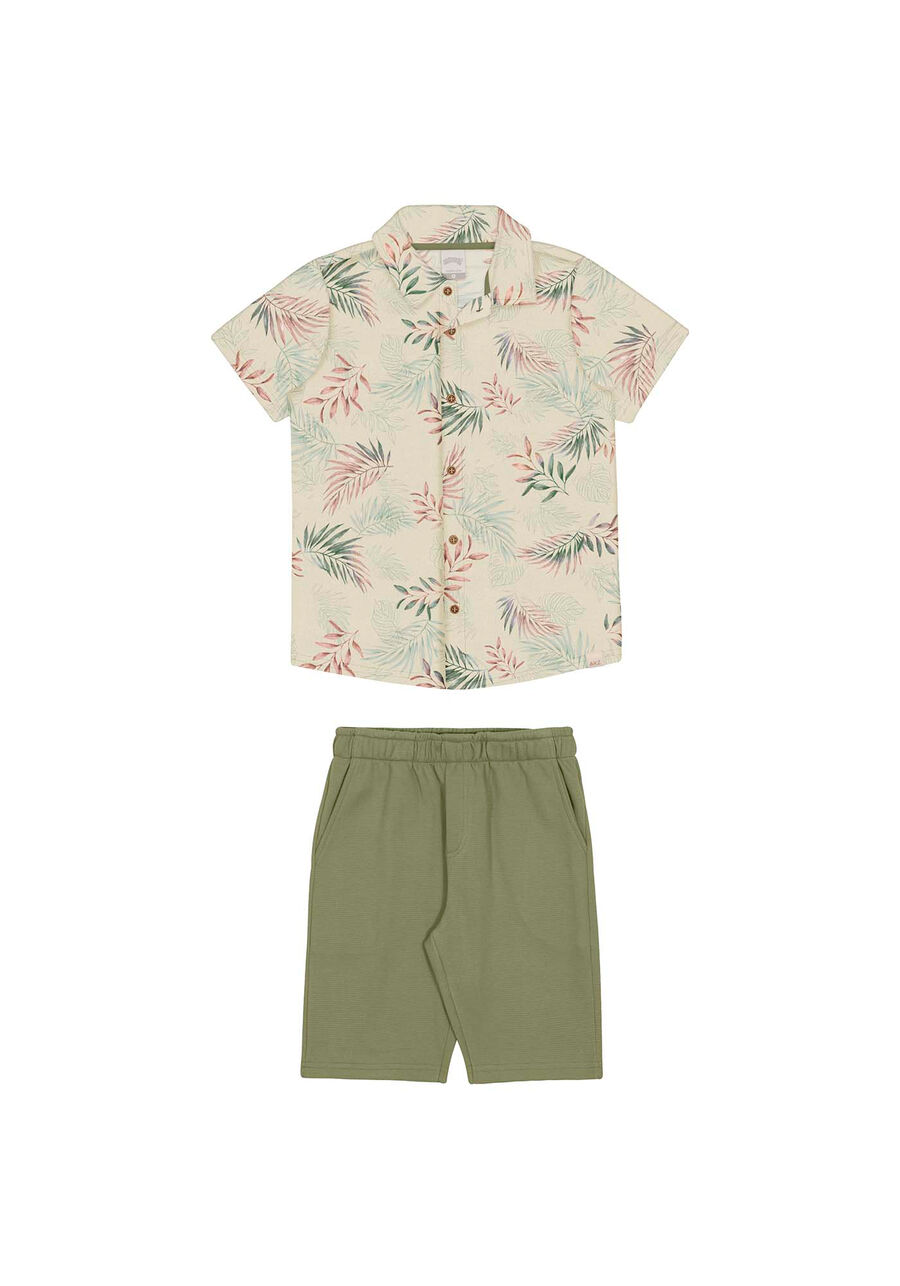 Conjunto Infantil Menino Em Algodão Com Camisa Estampada
