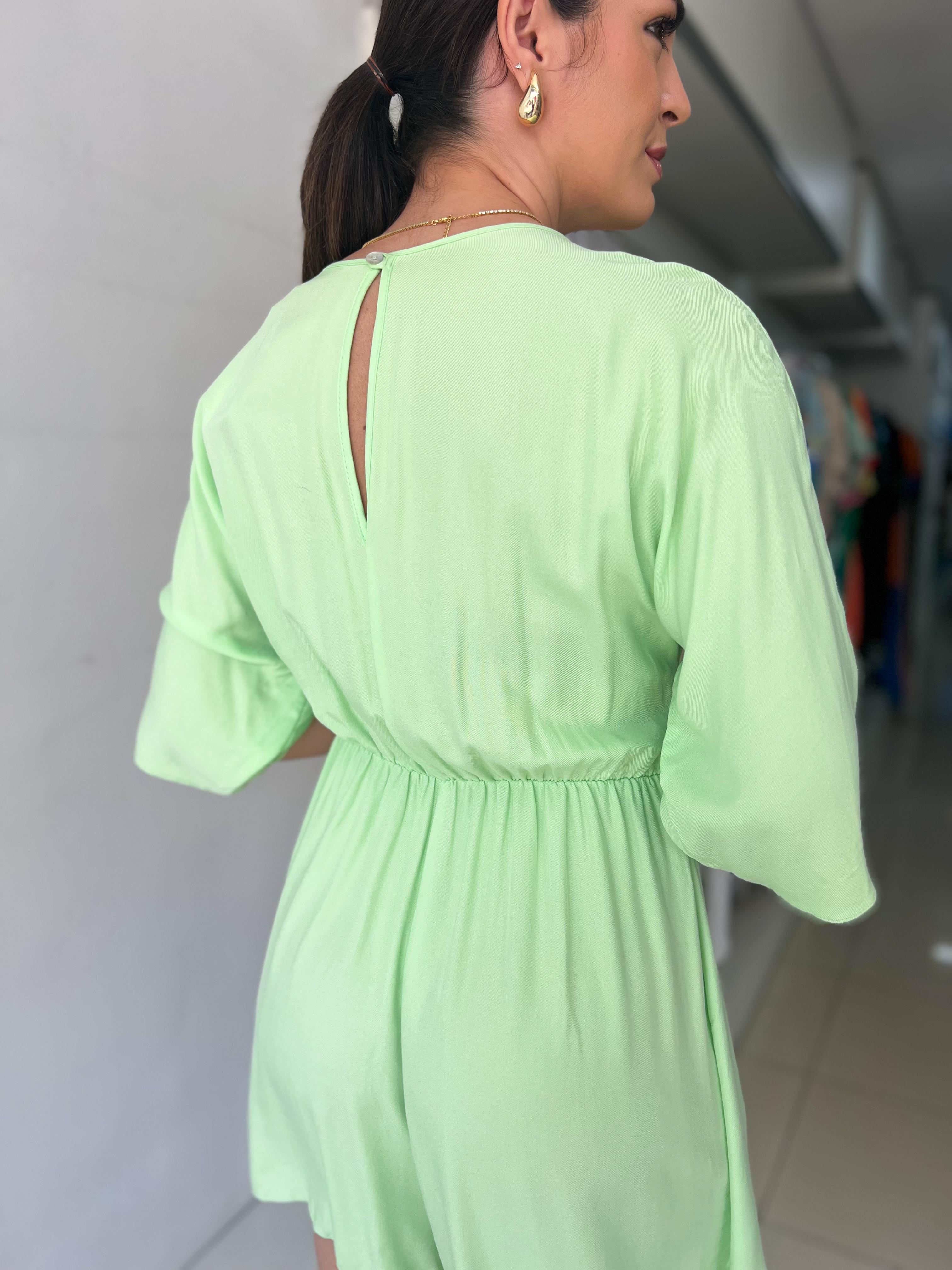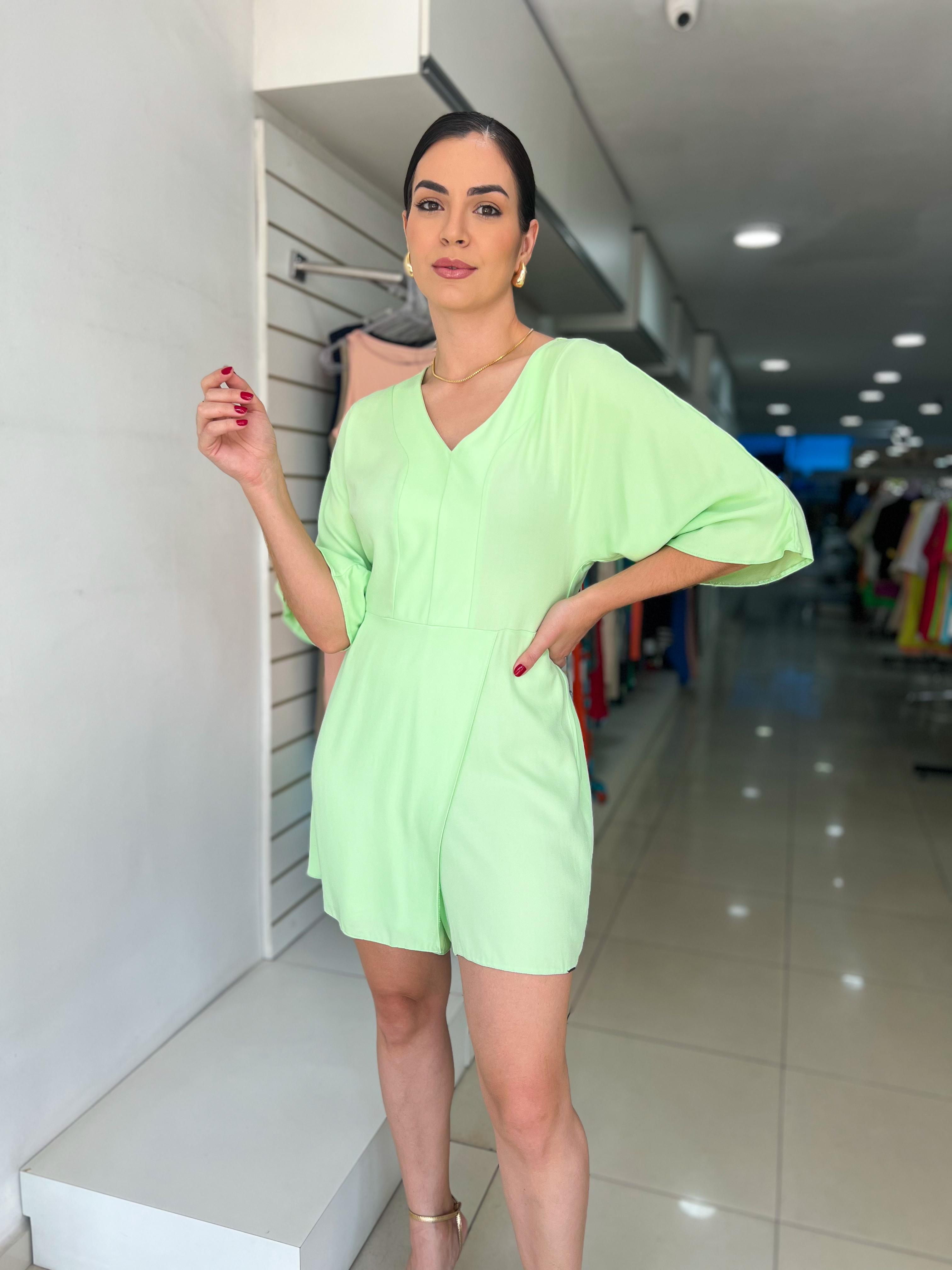 DISPONIVEL EM CORES LISAS Aproveite a praticidade deste macacão curto e crie looks sofisticados sem esforço. Com mangas fluidas e decote em "V", é uma escolha leve e despojada para o seu visual de verão. Combine com salto bloco! - Feito com viscose responsável - Produção com menor impacto ambiental - Tecido plano e leve - Comprimento curto - Mangas médias e fluidas - Decote em "V" Coleção Alto Verão 25