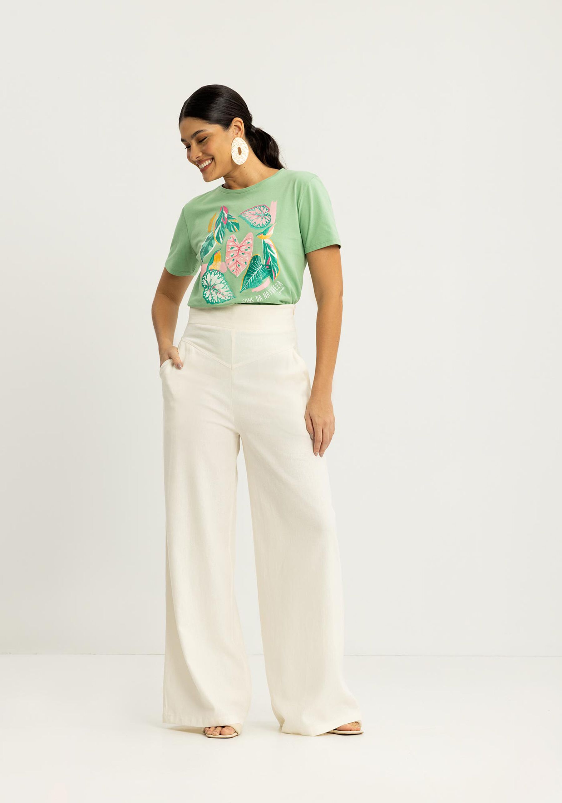 Com caimento confortável e estampa descolada, esta t-shirt é a escolha certa para elevar seu estilo nos dias de verão. Sua modelagem acinturada combina com tudo, desde jeans casuais até calças de alfaiataria. - Feita com algodão responsável - Produção com menor impacto ambiental - Meia malha penteada e macia - Modelagem reta - Mangas curtas - Gola redonda - Estampa frontal Coleção Alto Verão 25