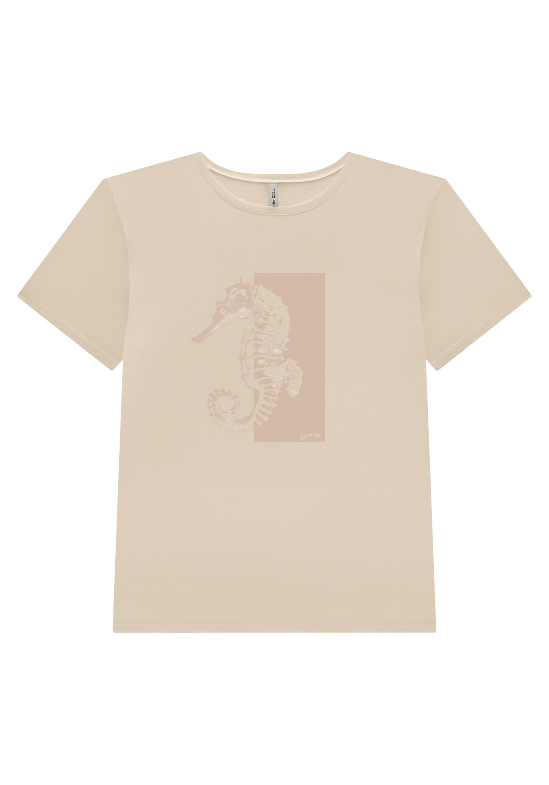 Dias perto do mar, vivendo sua verdadeira essência: a sensação que essa t-shirt Mais Mulher transmite é incrível! Além de confortável, ela traz uma estampa moderna de cavalo-marinho e é uma peça versátil que deixa o look com jeans ou com saia midi muito mais estiloso. - Confeccionada em Meia Malha Penteada: macia, que passa por um "penteamento" que retira impurezas e garante maciez, conforto e durabilidade - Modelagem tradicional - Mangas curtas - Decote redondo - Estampa frontal em serigrafia
